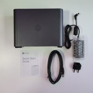Omdat de BeeStation geen NAS is voor de power user, zijn de aansluitingen aan de achterzijde beperkt tot het minimum. Voor de netwerkverbinding is er een 1Gbit ethernetpoort. De doorgewinterde NAS-gebruiker zal dit wellicht gedateerd vinden, maar voor het maken van back-ups van gezinsfoto’s en huiswerk is deze snelheid ruim voldoende. Bovendien ondersteunen de meeste modems en switches in thuissituaties vaak nog niet meer dan 1Gbit.