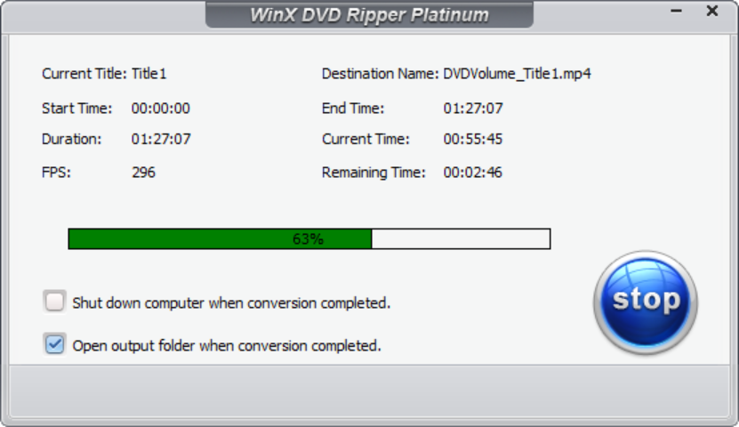 Klik vervolgens op RUN om het proces te starten. Afhankelijk van de snelheid van je computer duurt het omzetten van een dvd enkele minuten tot maximaal ongeveer een uur.