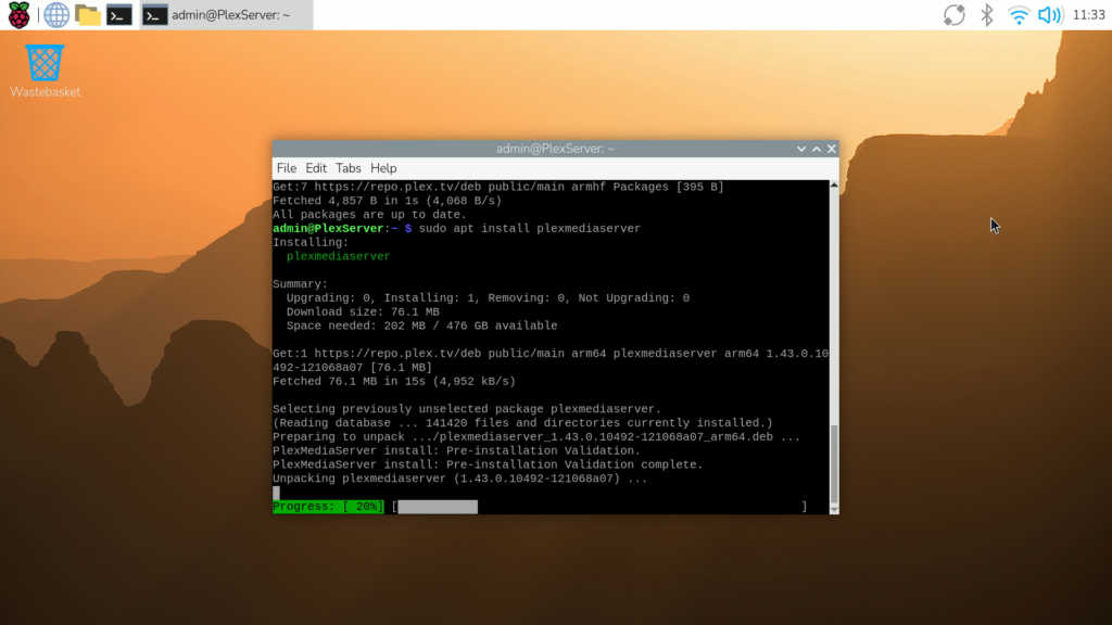 Nu de officiële Plex-repository is toegevoegd, kunnen we het programma installeren.
