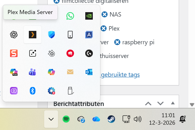 Installeer het programma en start vervolgens de Plex Media Server. Het lijkt alsof er niets gebeurt, maar rechtsonder in de taakbalk verschijnt een Plex-pictogram tussen de systeemicons.