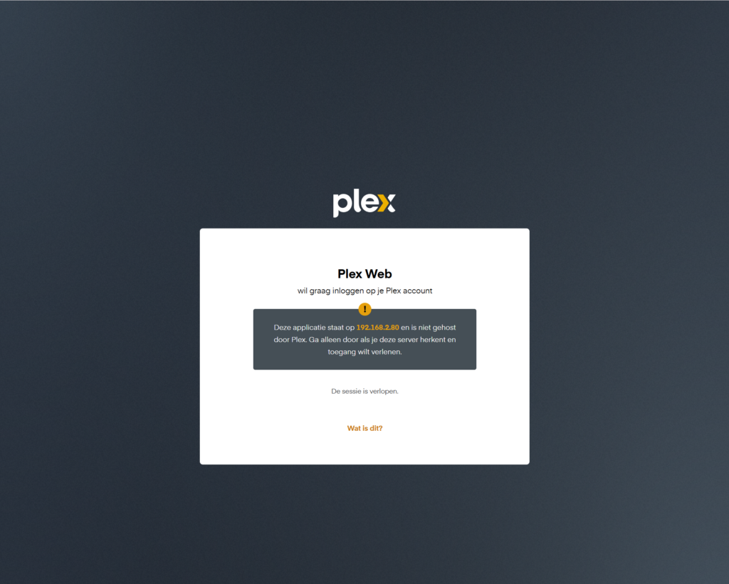 Als alles goed is gegaan verschijnt er een melding dat je verbinding maakt met een server die niet door Plex zelf wordt gehost. Log hier in met je Plex-account. Heb je nog geen account, dan kun je er hier eenvoudig een aanmaken.