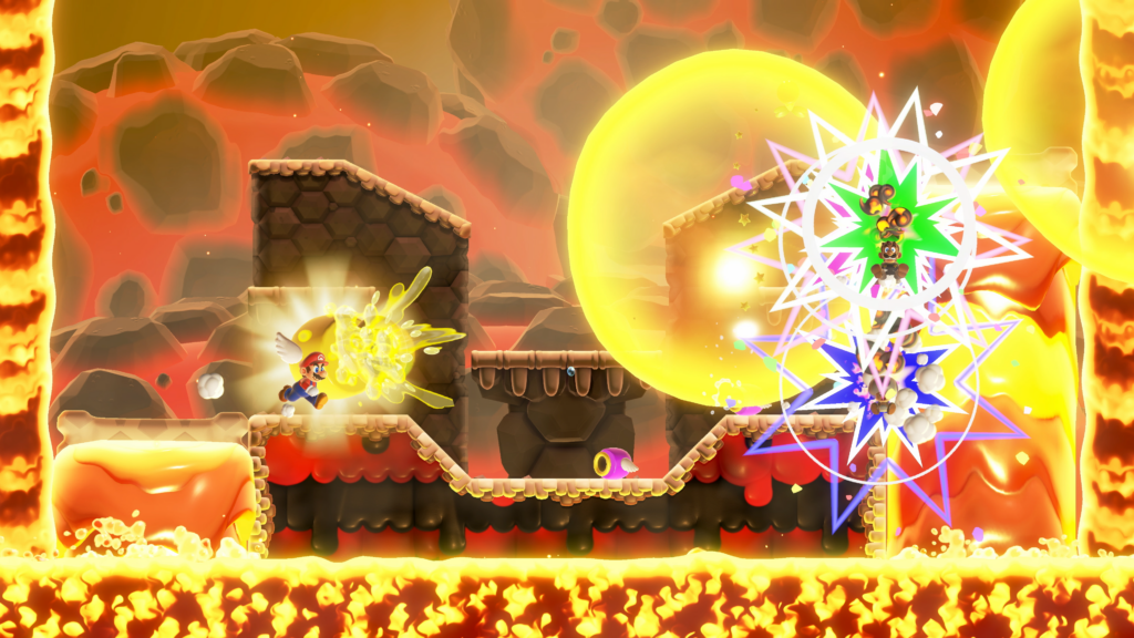 Totaal hebben zeven Koopalings de “Wonderkracht” van Bowser gekregen, en die gevechten zijn andere koek. Je moet je echt goed voorbereiden: welke power-ups neem je mee en welke badges zet je in? De ‘oplaadsprong’ is bijvoorbeeld essentieel om bepaalde voorwerpen te kunnen grijpen tijdens een gevecht.
